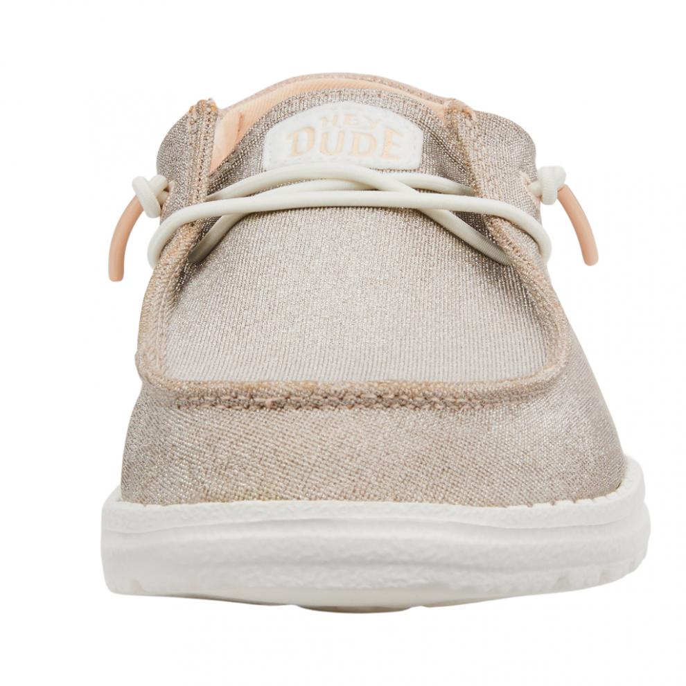 Kolekcija Wendy Metallic Sparkle predstavlja naše klasične mokasine z zgornjim delom iz svetleče tkanine, ki ima poseben efekt. Kljub temu zagotavlja oporo in je narejena tako, da objame vaše stopalo po vsej dolžini. Ponašajo se z ultralahkim podplatom in zasnovo z našim sistemom za enostavno obuvanje z elastičnimi vezalkami brez zavezovanja.