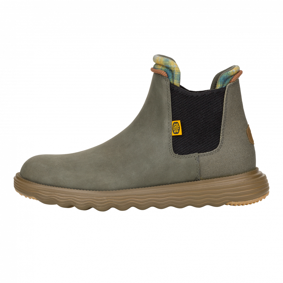 Elegantni čevlji za elegantne moške. Branson Classic se v tej sezoni potegujejo za najbolj priljubljene moške čevlje, saj se lahko pohvalijo z zgornjim delom iz umetnega vodoodpornega usnja, lahkim fleksibilnim podplatom iz gume za dodaten oprijem. Obujte se v klasično udobje in slog HEYDUDE™.