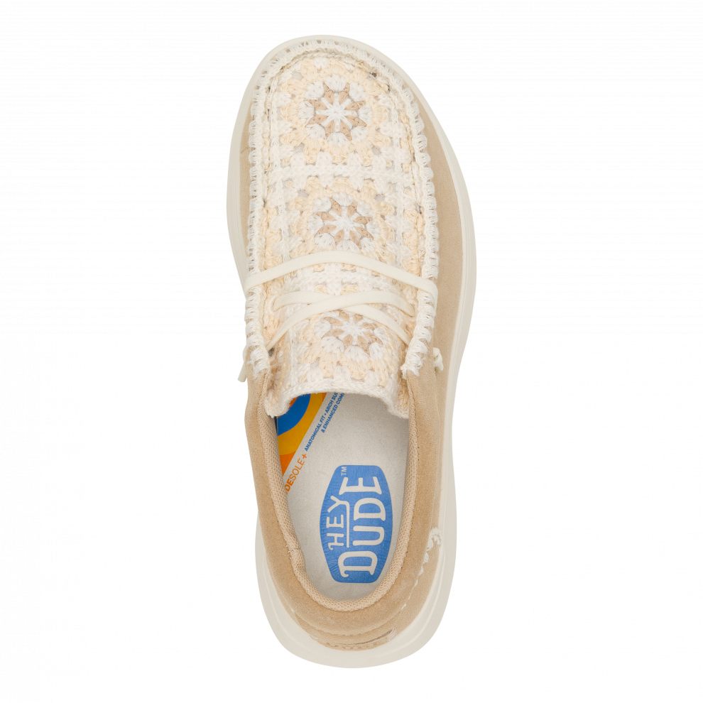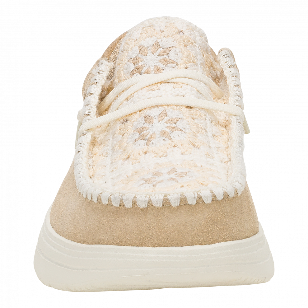 Začutite luksuzno udobje v modelu Wendy Comf Suede Cottage Crochet. To udobno obutev odlikuje zgornji del iz premium semiša z očarljivimi kvačkanimi detajli. Dodane vezenine in izjemno mehak penast vložek stopala ovijejo v modno udobje. Za popolno razvajanje nog.