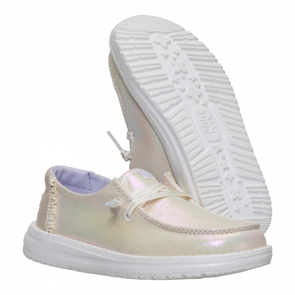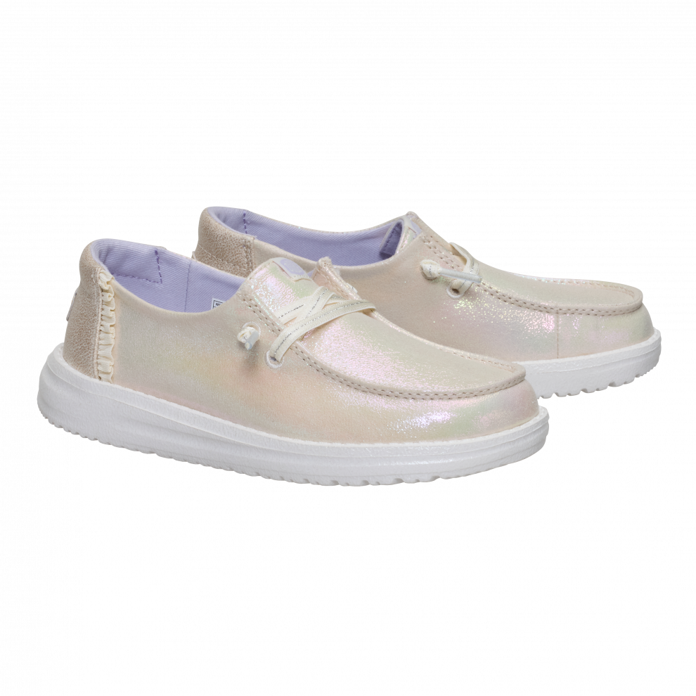 Ti bleščeči čevlji Wendy za starejše otroke lahko polepšajo vsak dan. V oči padejo z bleščečim tkaninskim zgornjim delom, okrašenim z igrivimi, mehkimi detajli. Slog easy-on ima širok ovratnik, v katerega lahko enostavno zdrsnete, ter raztegljive vezalke, ki jih ni treba zavezovati. Lahki, prožni in udobni so popolni za dan, poln igre.