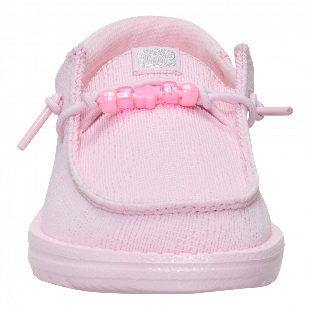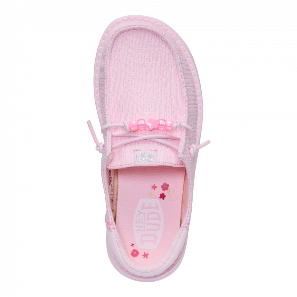 Ti čevlji Wendy za starejše otroke so preprosti, lahki in živih barv. Z zračnim mrežastim zgornjim delom in nekaj opore v predelu pete jih je zaradi večjega ovratnika enostavno obuti. Elastične vezalke z zabavnimi okraski iz perlic ni treba zavezovati, saj dobro držijo.