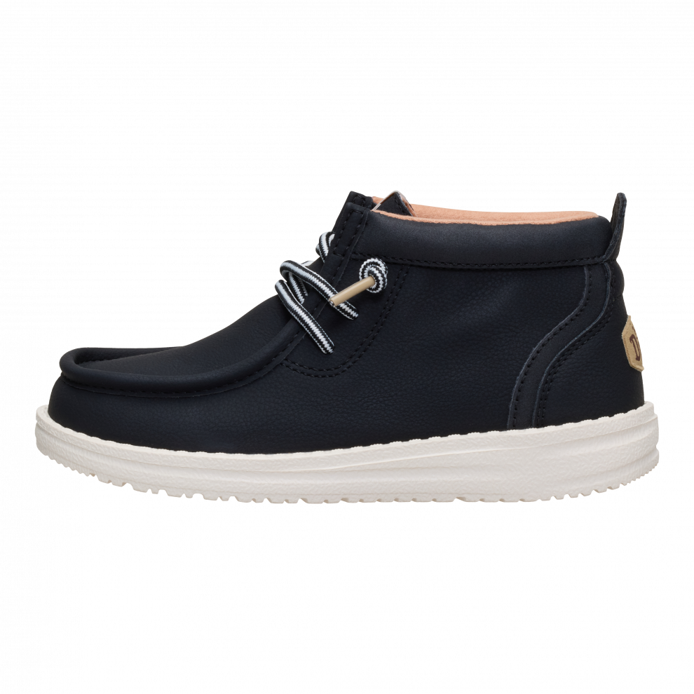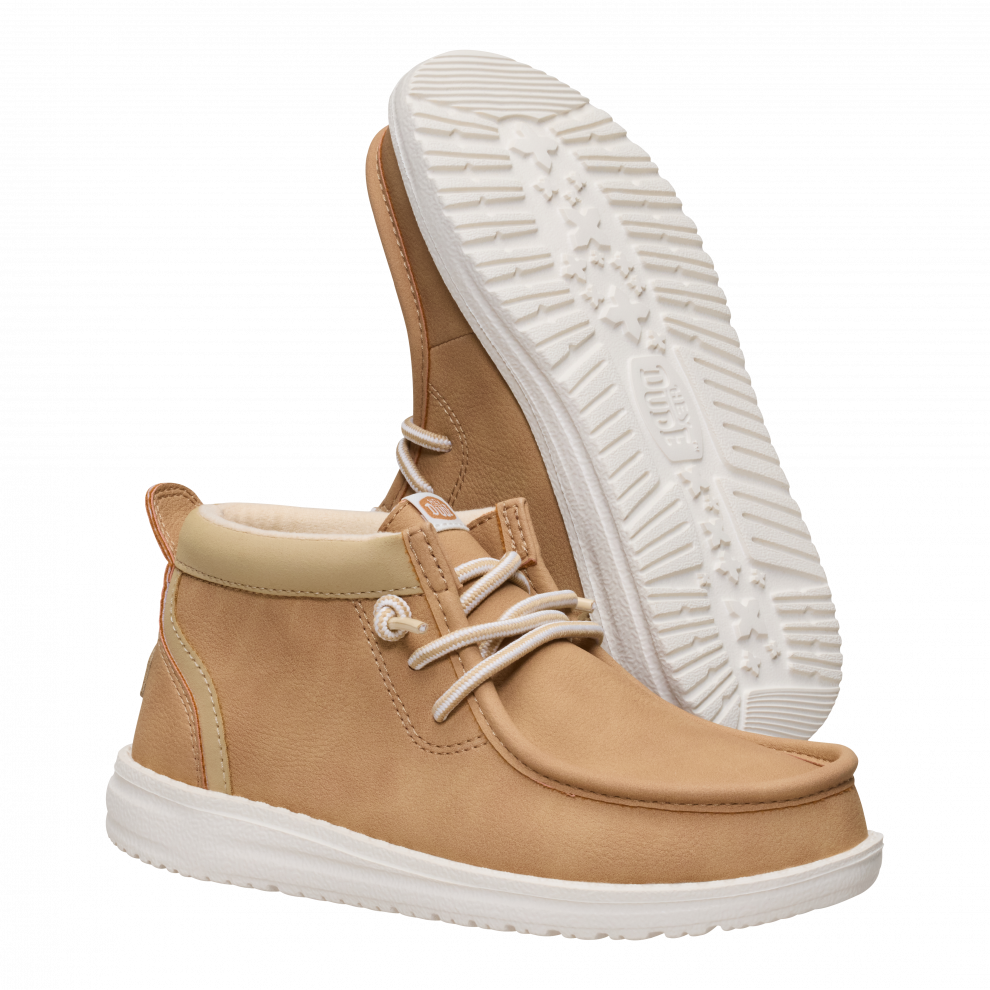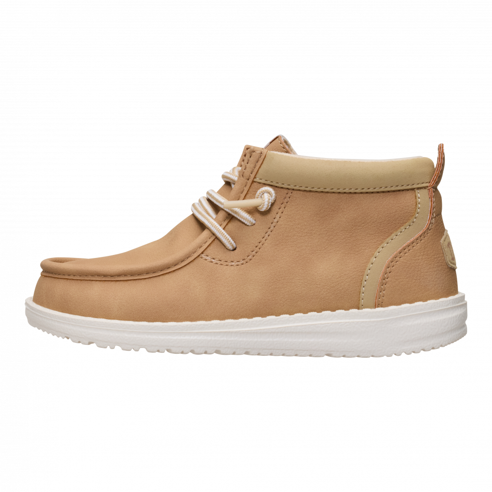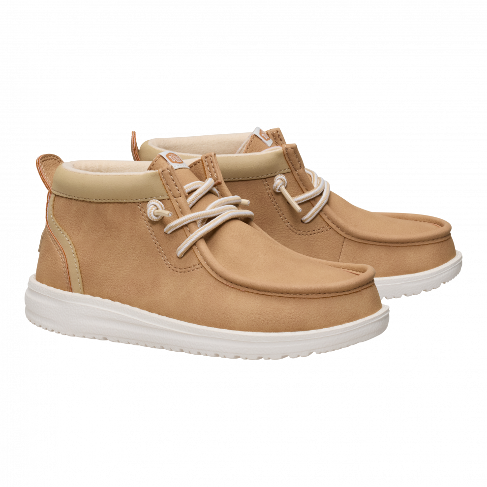 Ti čevlji Wally Mid so popolni za modne otroke, ki imajo radi preprostost. Izdelani iz klasičnih materialov v vsestranskem odtenku, so srednje visoki do gležnja, a jih je kljub temu zelo enostavno obuti. Zahvaljujoč posebnim elastičnim vezalkam HEYDUDE™ jih za varen oprijem ni treba zavezovati.