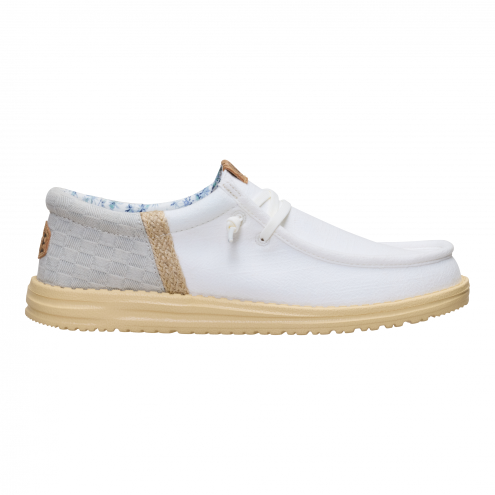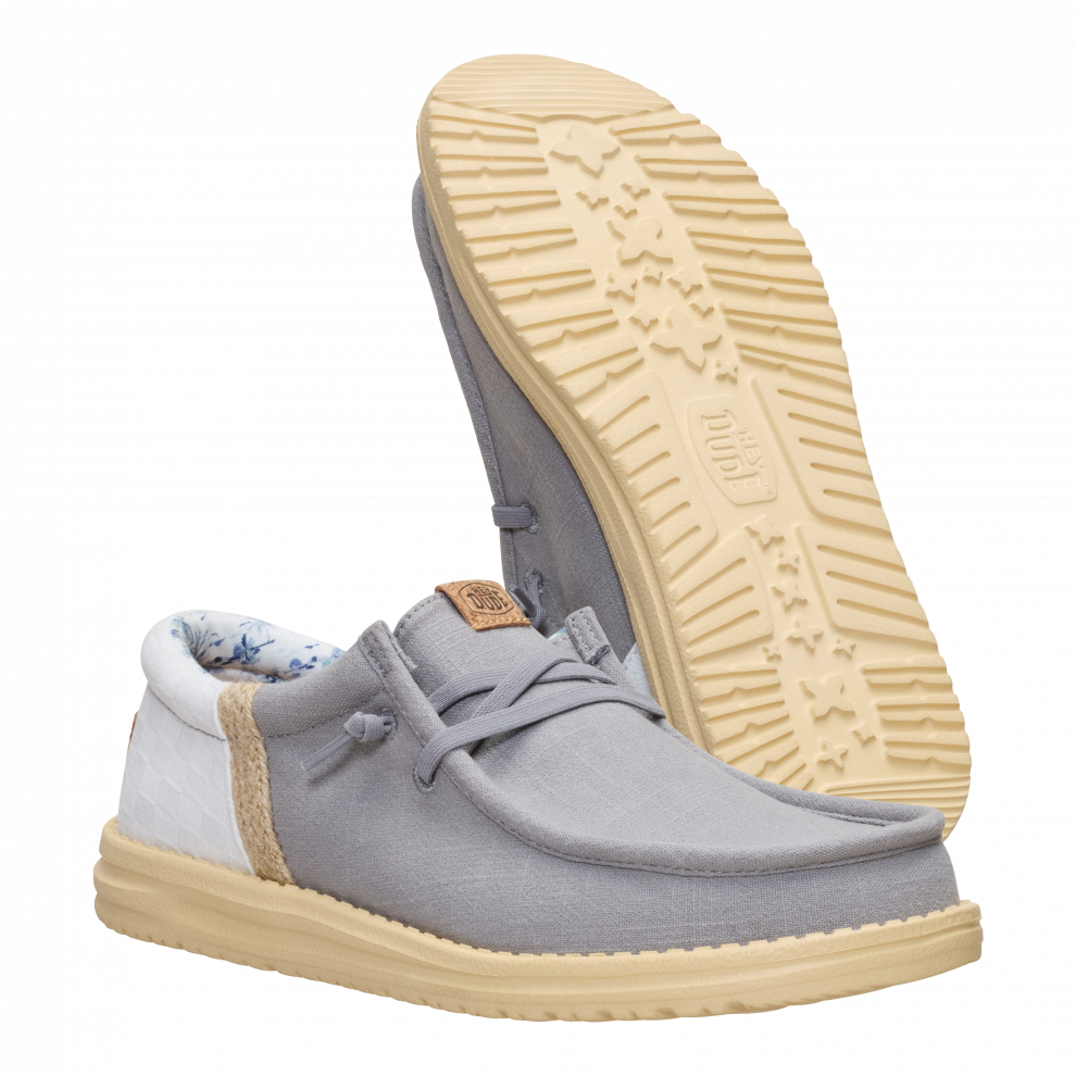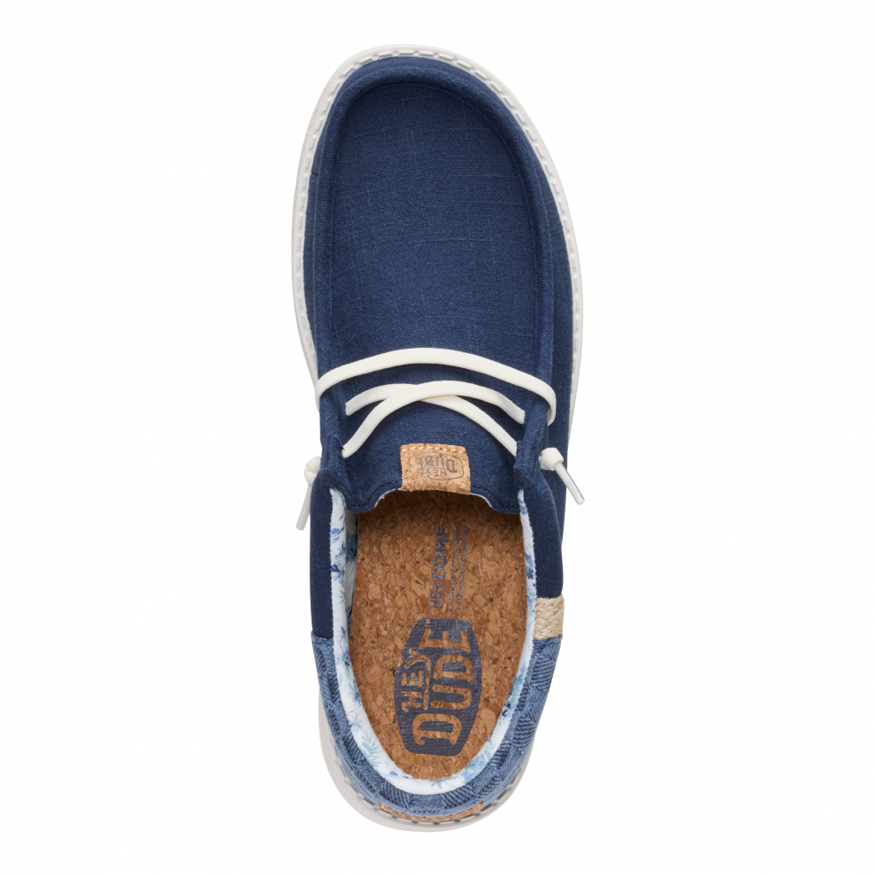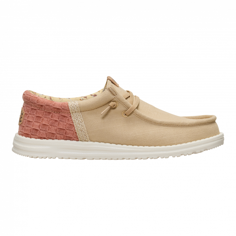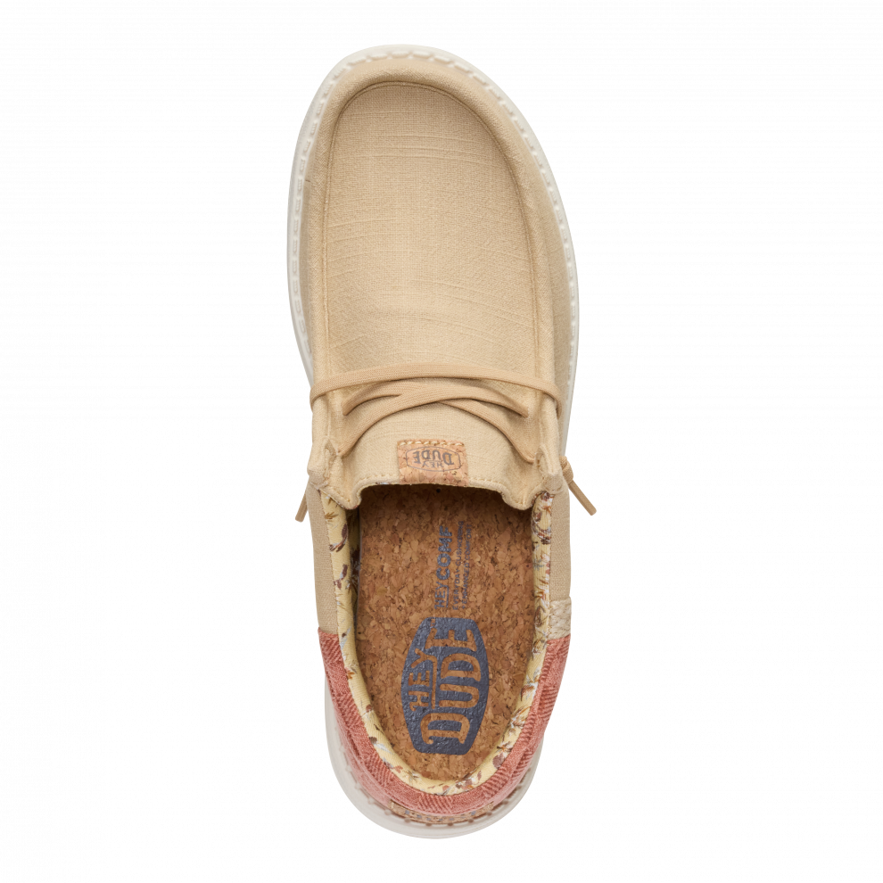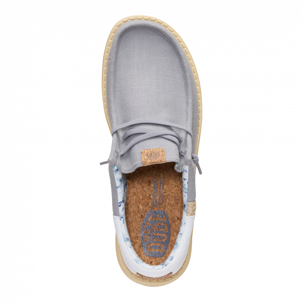 Vsak poletni dan bi moral imeti pridih dopusta. Ti čevlji Wally so pripravljeni na pot od bara na plaži do hotelskega balkona. Morda vmes še na izlet. Vse je mogoče. Vložek je iz plute, zato nogavic ne potrebuješ. Sprednji del je iz lanu – kot tvoje najljubše počitniške hlače.
