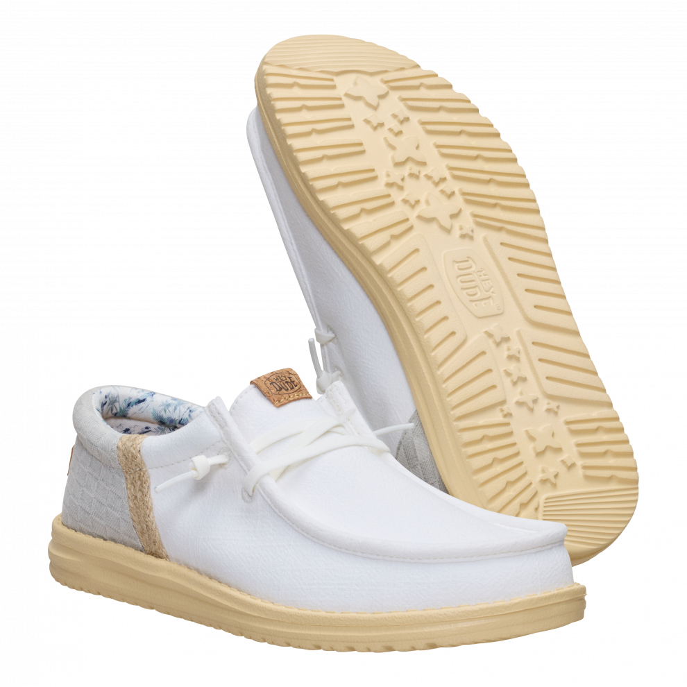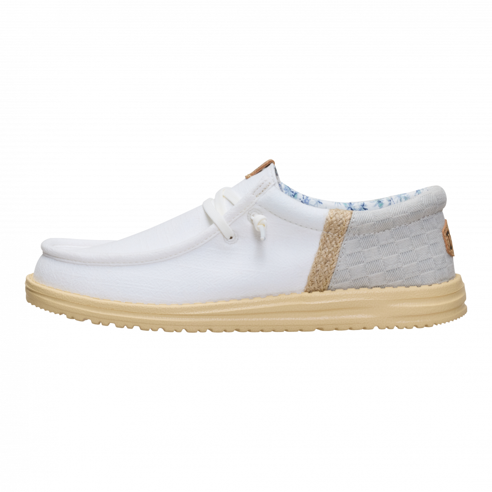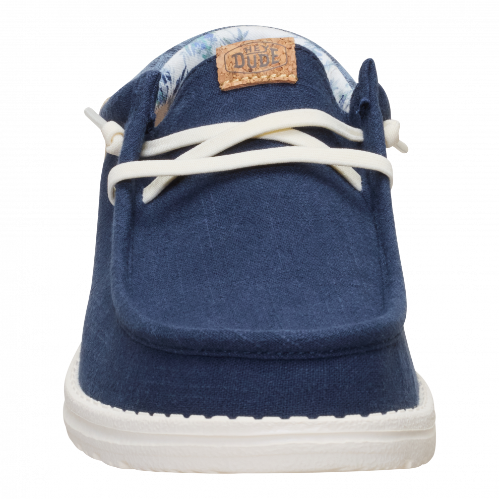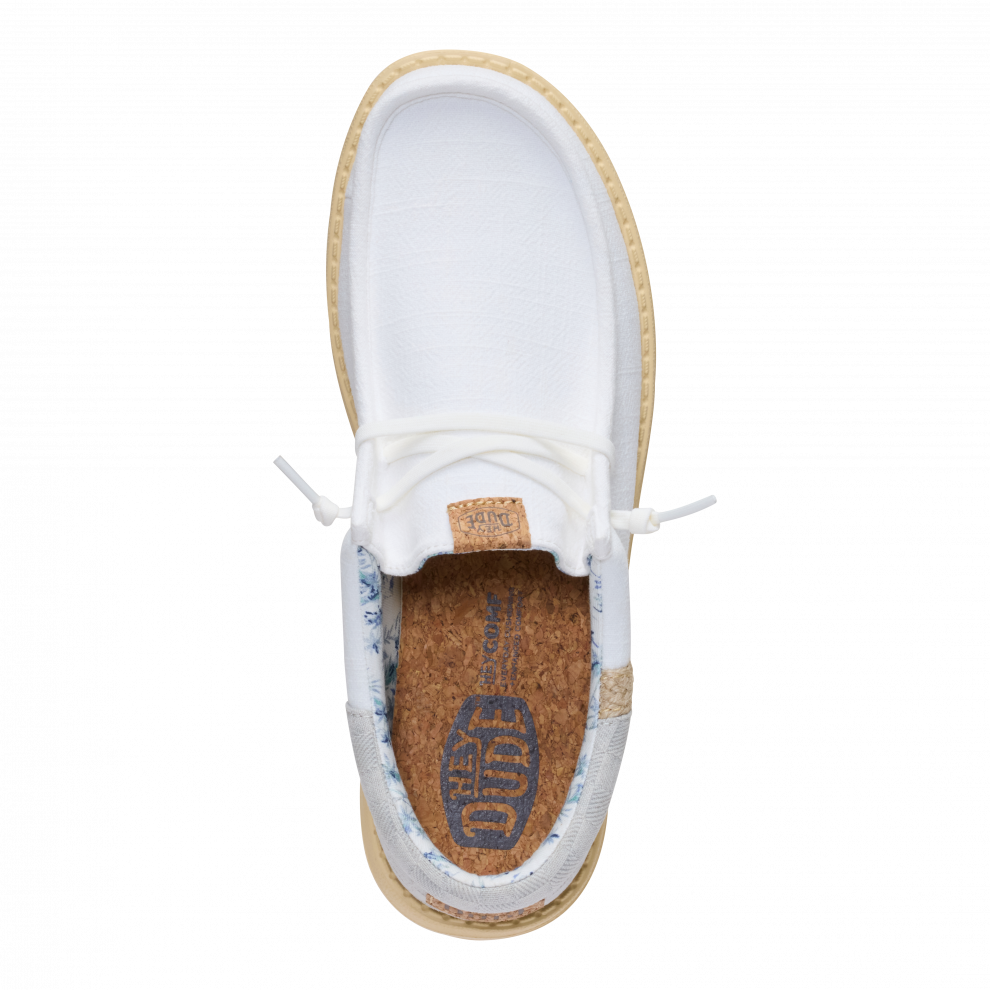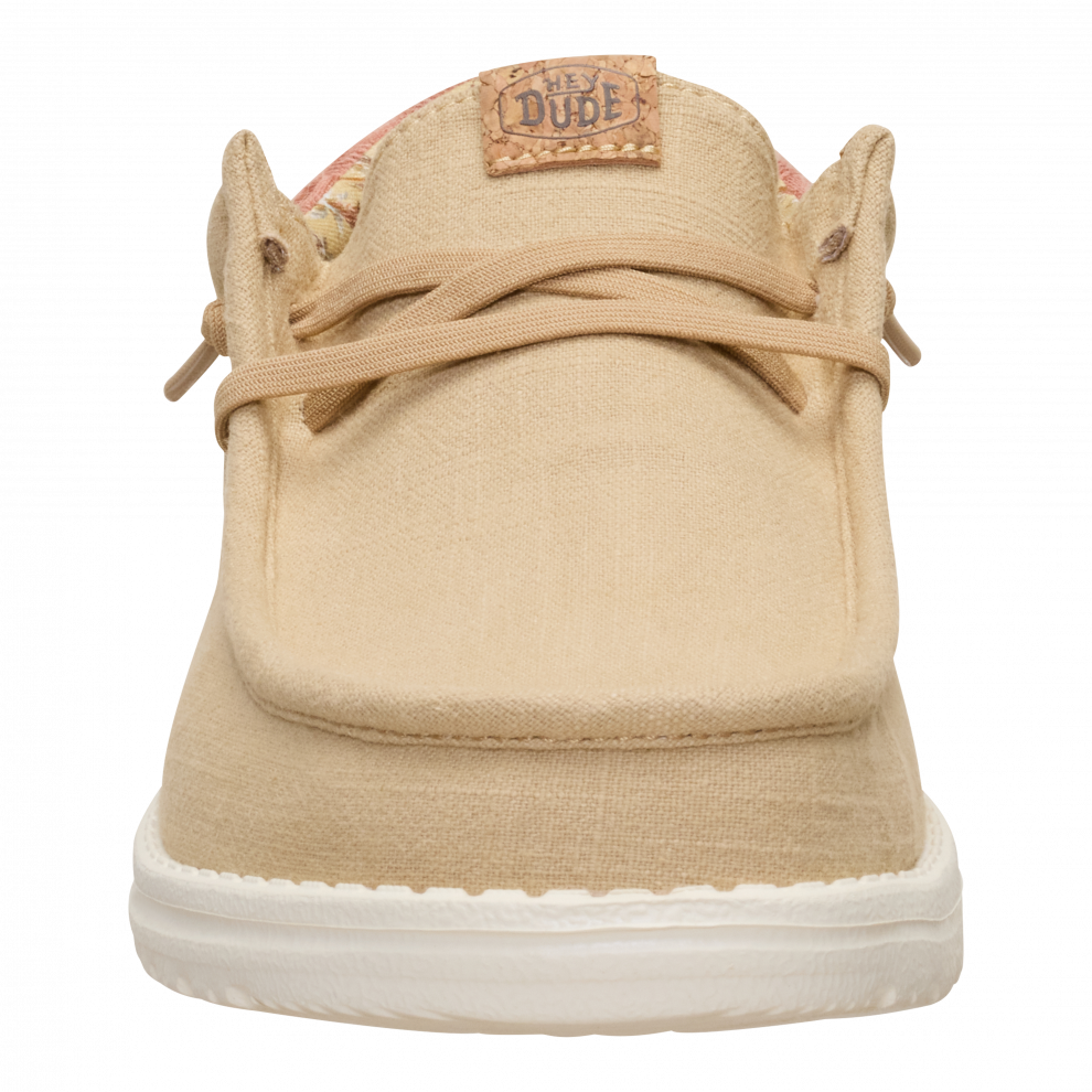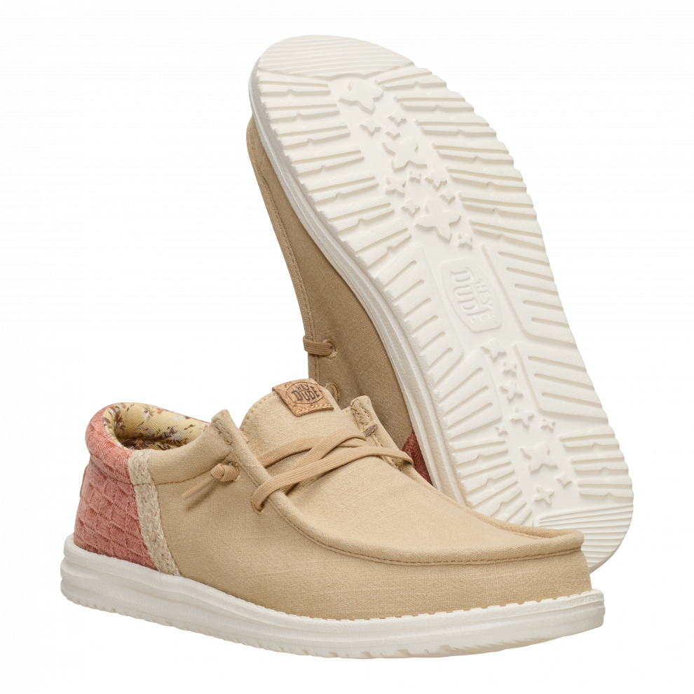 Vsak poletni dan bi moral imeti pridih dopusta. Ti čevlji Wally so pripravljeni na pot od bara na plaži do hotelskega balkona. Morda vmes še na izlet. Vse je mogoče. Vložek je iz plute, zato nogavic ne potrebuješ. Sprednji del je iz lanu – kot tvoje najljubše počitniške hlače.